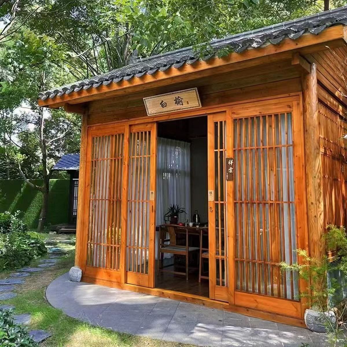 北京古朴木屋藏林间,格栅窗棂透柔光, 临水而建映倒影,石径青苔岁月长,夜灯初上暖人心,偷得浮生半日闲